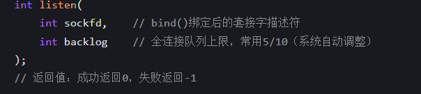 if (listen(_listensockfd, gbacklog) < 0) // gbacklog后面讲