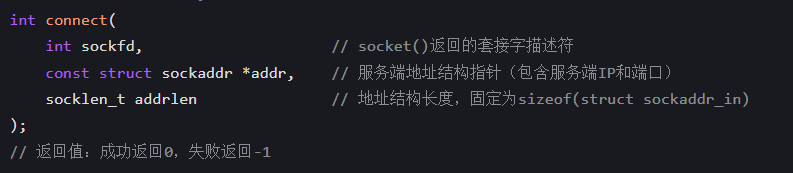 if (connect(_sockfd, (struct sockaddr *)&server, len) != 0)