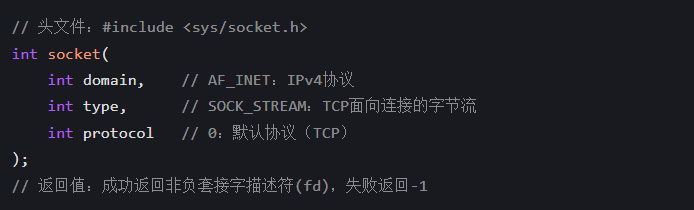 _listensockfd = socket(AF_INET, SOCK_STREAM, 0);