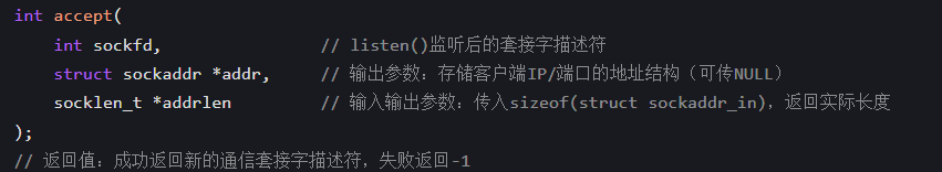 struct sockaddr_in peer; // 用于获取客户端ip和port