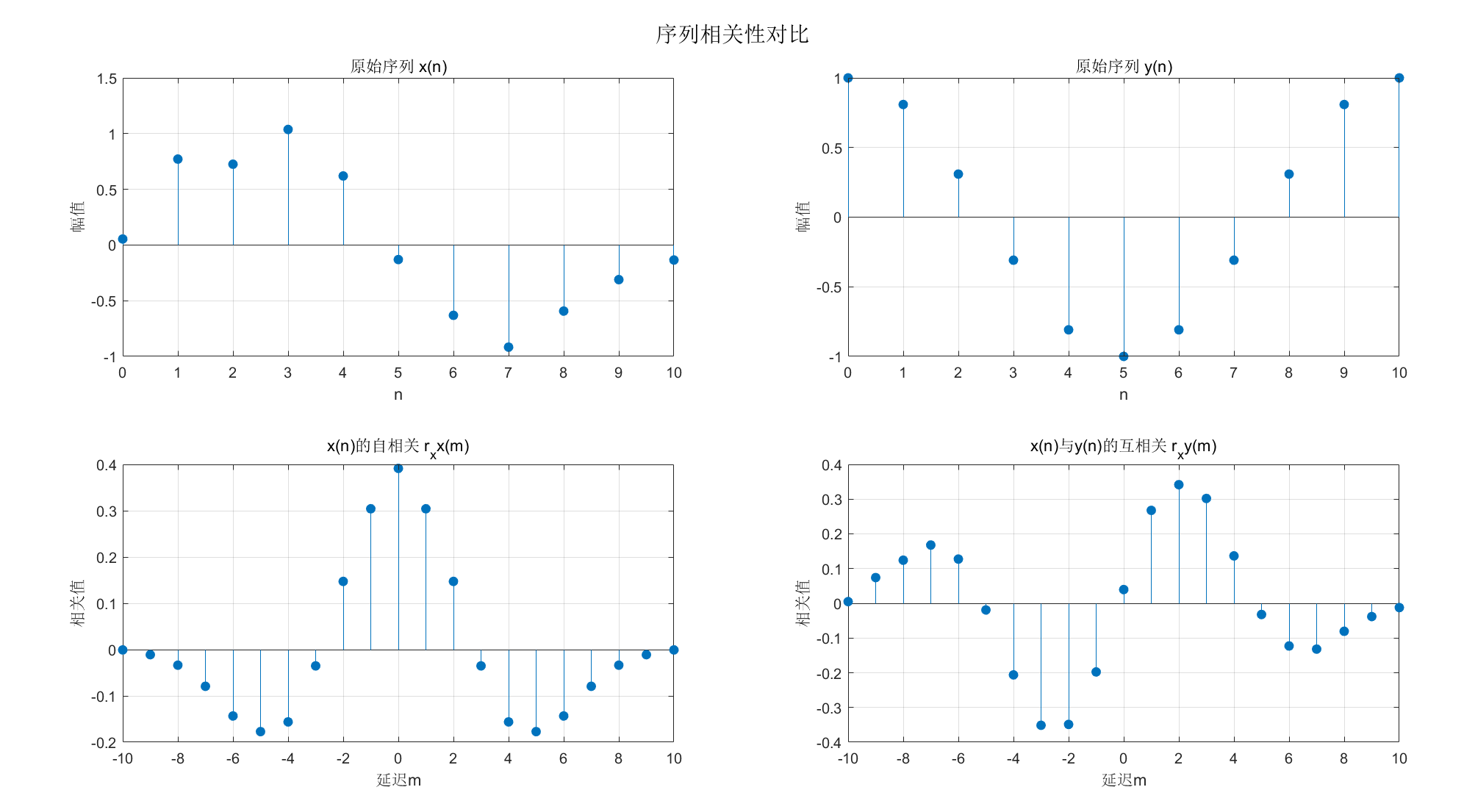 | xcorr | 计算序列相关性 | xcorr(x, y) |