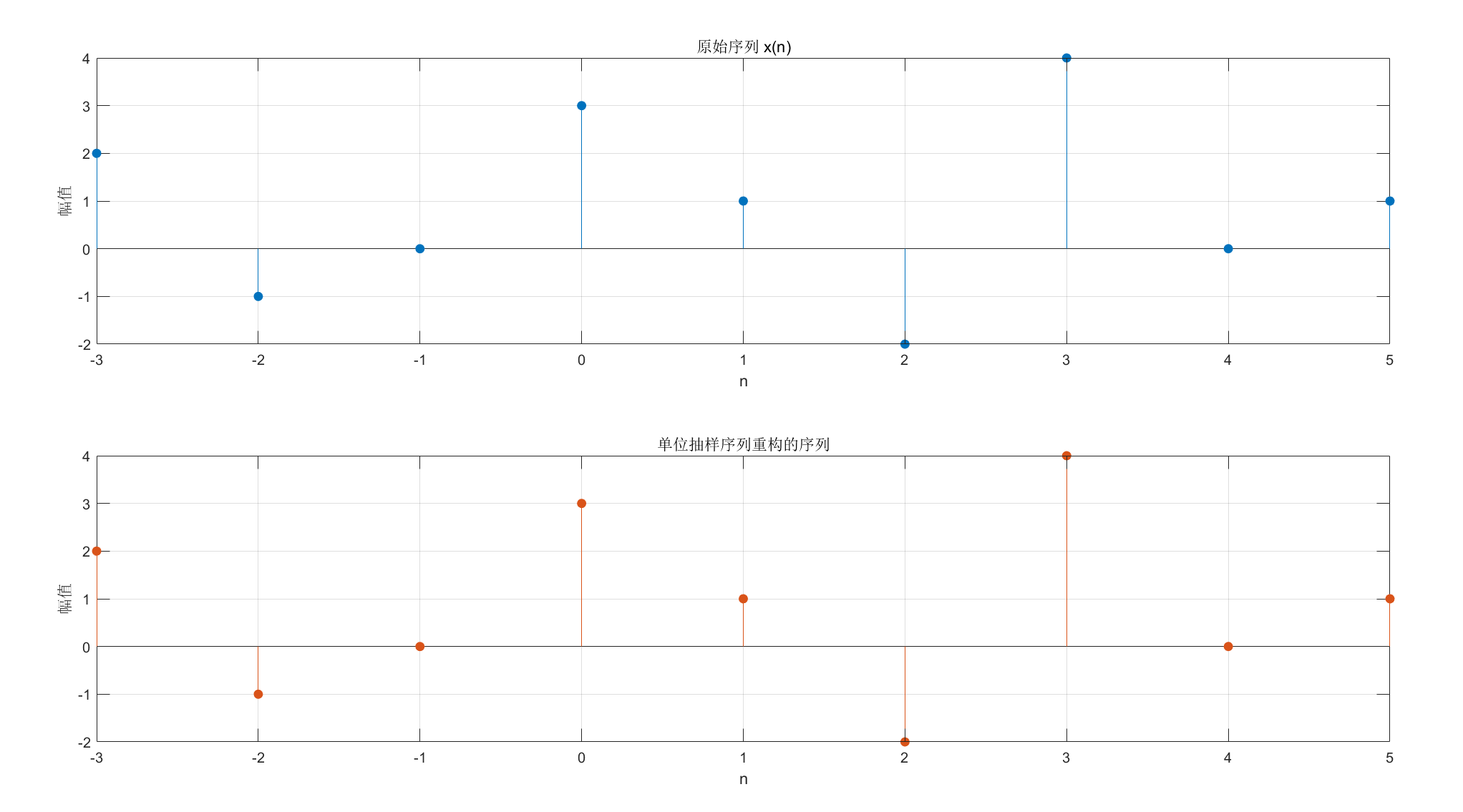 subplot(3,1,1); stem(n_x, x, 'filled'); title('输入序列 x(n)'); xlabel('n'); ylabel('幅值'); grid on;