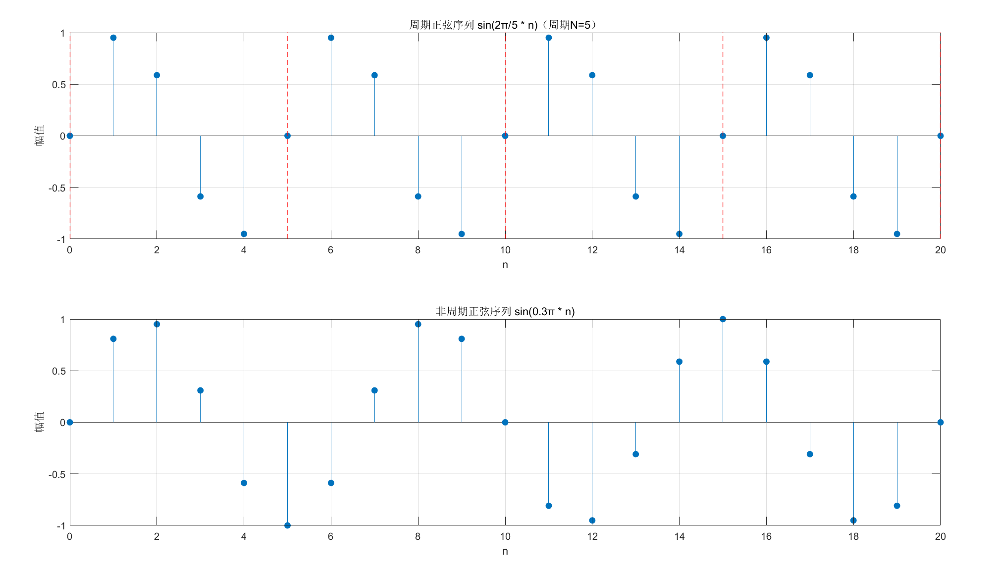 - 验证不同频率正弦序列的周期性,总结周期计算规律;