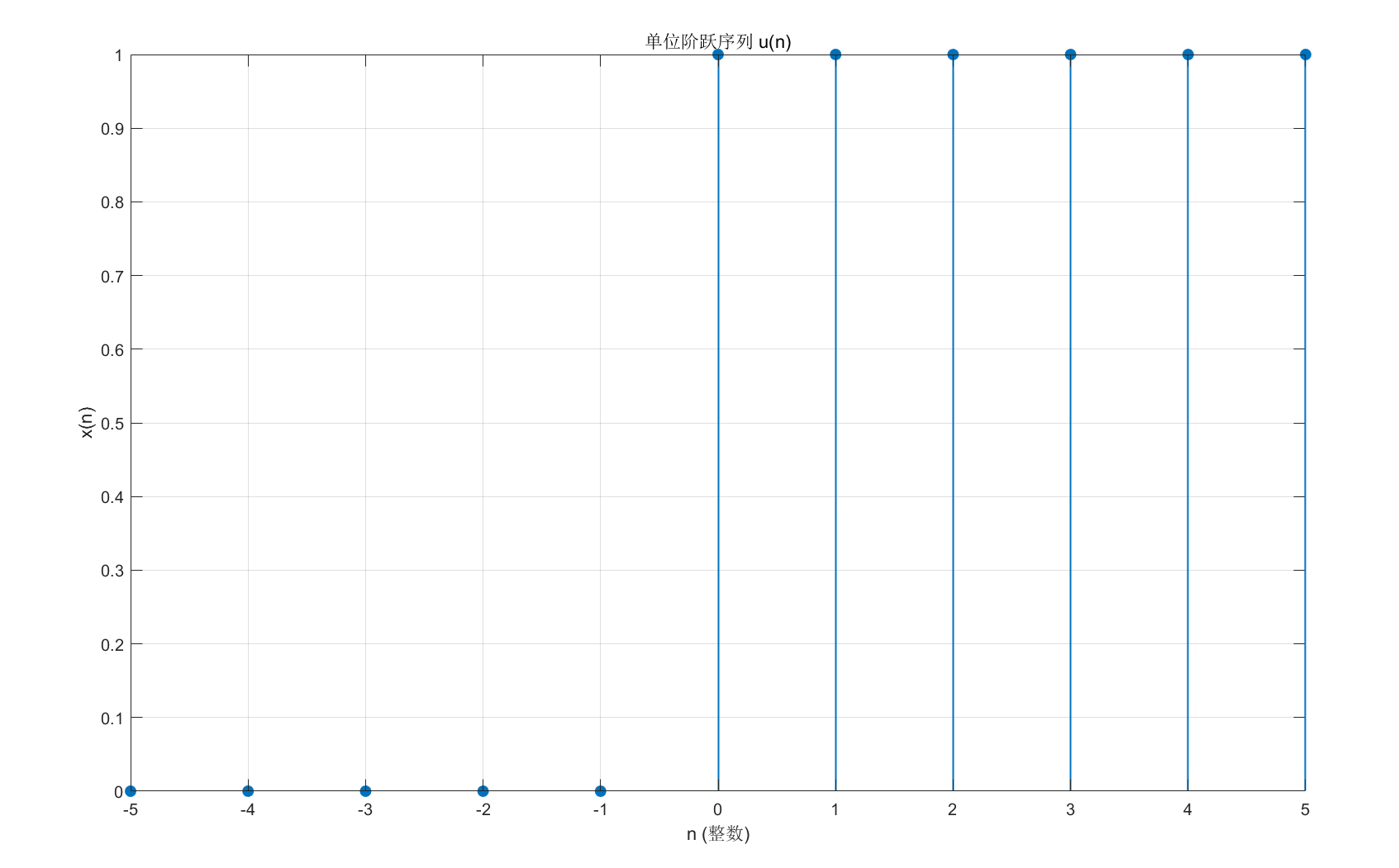 运行效果:生成 - 5 到 5 范围内的单位阶跃序列图,