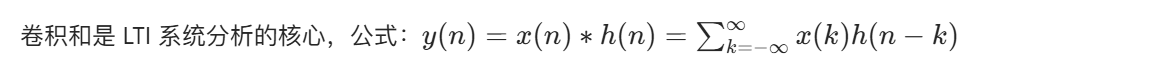 - LTI 系统需满足线性 + 移不变,因果系统 n<0 时单位抽样响应为 0,稳定系统单位抽样响应绝对和有限;