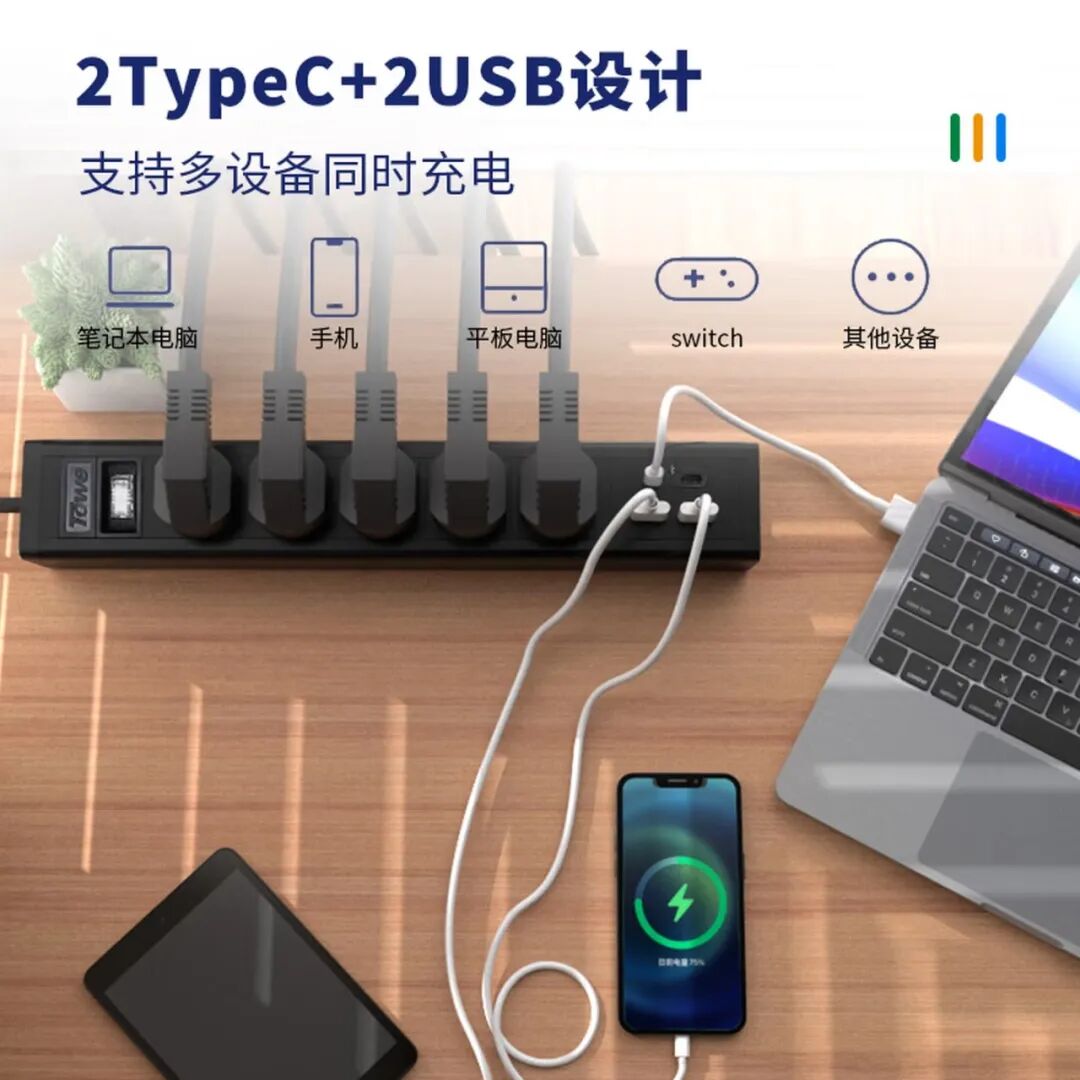 面对这一普遍痛点,专业电气品牌同为科技(TOWE)推出了一系列智能快充桌面PDU插座,旨在用一体化、高功率、高安全性的解决方案,终结桌面的充电乱象。本文将深入解析,这款集成了65W快充能力的"桌面电站",是如何重新定义我们的充电方式,让高效与整洁得以兼得。