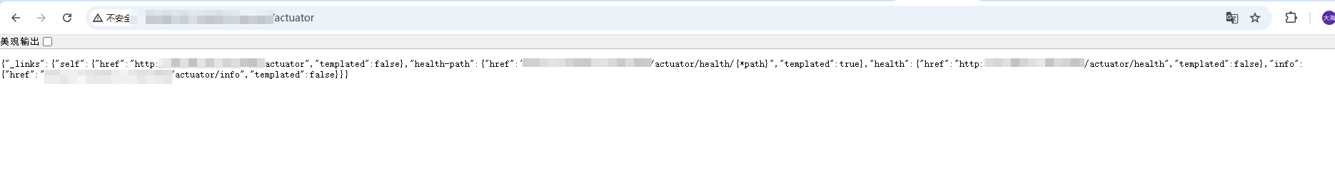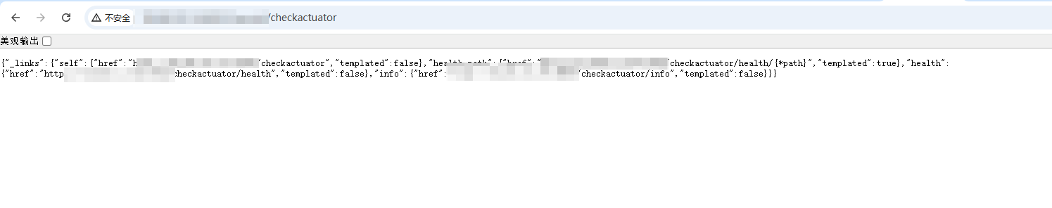 敏感的环境信息没有返回,/actuator 返回的是导航菜单,/actuator/health 返回服务是否存活,所以基本可以确认安全了。