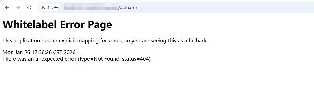 部署的微服务项目中,访问 http://ip:port/actuator 时,未受到任何权限控制,直接暴露了 Actuator 的接口信息。应用在生产环境中暴露了潜在的敏感信息,存在较大的安全隐患。