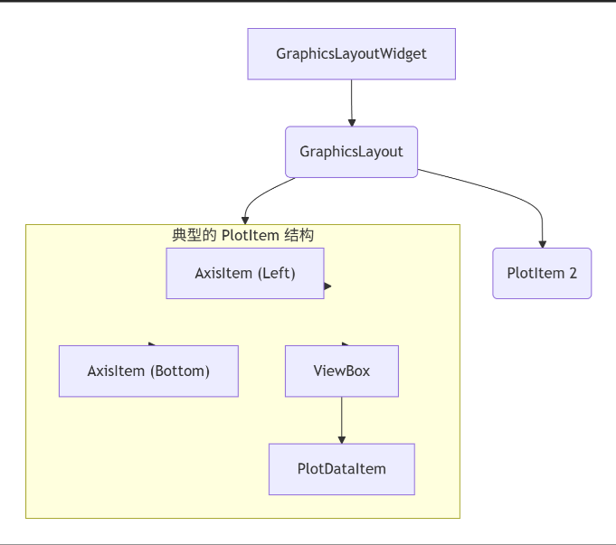 QGraphicsScene理解为整个画布,QGraphicsView是观察这个画布的窗口,而所有看到的图形元素(如曲线、坐标轴)都是QGraphicsItem。PyQtGraph在此基础上构建了更适用于科学绘图的组件。 -