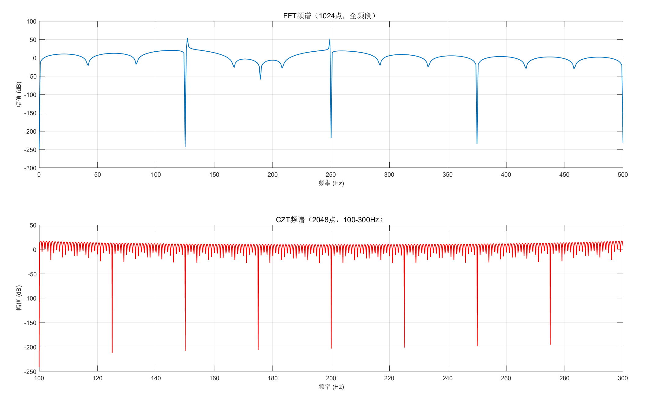 % 3. 计算CZT(只关注100-300Hz频段,更高分辨率)