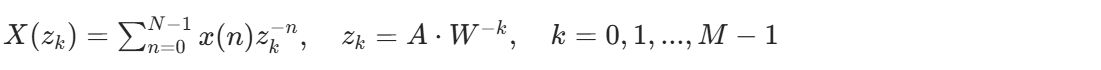 X_czt = czt(x, M, exp(1j*2*pi*(f_end-f_start)/(fs*M)), exp(1j*2*pi*f_start/fs));