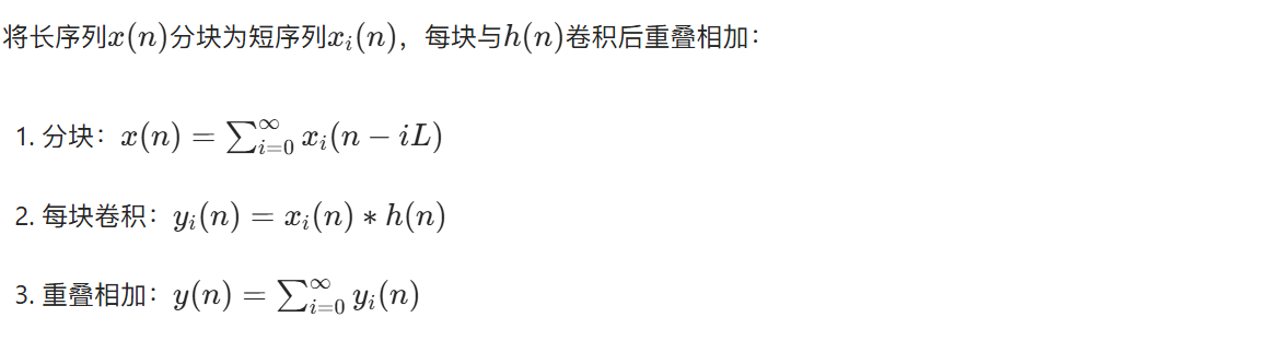 - 工程应用:FFT 可高效计算卷积、相关、频谱分析等,重叠相加 / 保留法解决长序列卷积问题,CZT 适用于局部高分辨率频谱分析。