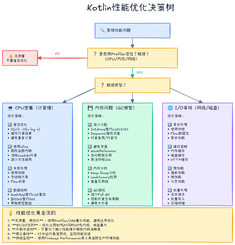 性能优化不是"把代码写得看不懂",而是在保持代码清晰的前提下,理解并消除不必要的开销。当你理解了内联、内存分配、字节码的原理,就能在写代码时做出更明智的选择------既优雅又高效。