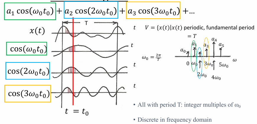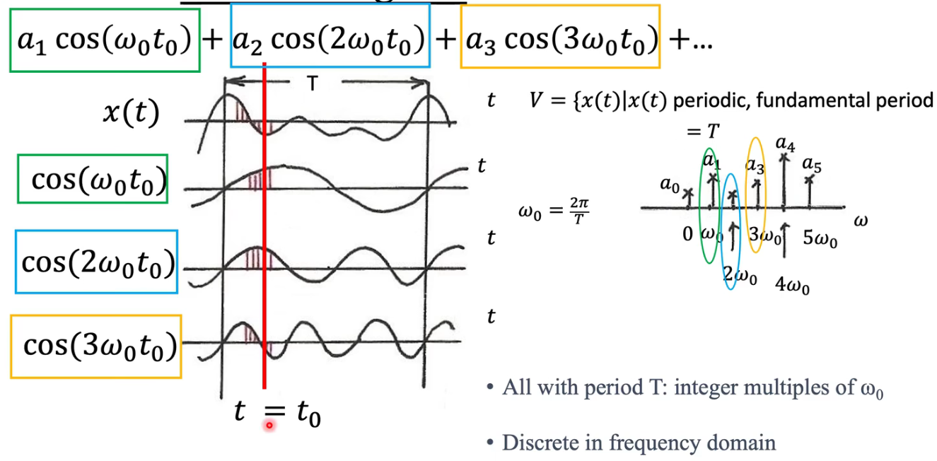 目标 :已知每个频率的成分 F ( ω ) F(\omega) F(ω),把它们加起来,还原回原始波形 f ( t ) f(t) f(t)。