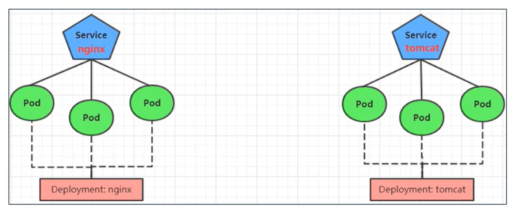 准备service和pod为了后面的实验比较方便,创建如下图所示的模型