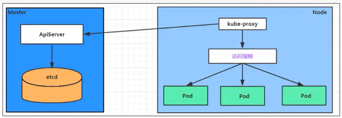 每个Node节点上都运行着一个kube-proxy服务进程。当创建Service的时候会通过api-server向etcd写入创建的service的信息,而kube-proxy会基于监听的机制发现这种Service的变动,然后它会将最新的Service信息转换成对应的访问规则。