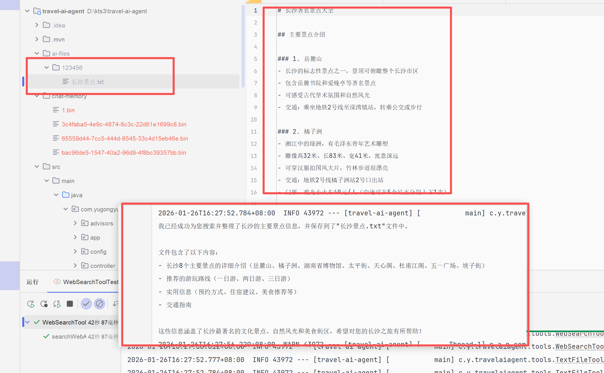 String result = travelApp.chat(chatId,"我想去长沙玩3天,预算3000,帮我查询资料规划行程,并生成旅游计划PDF");