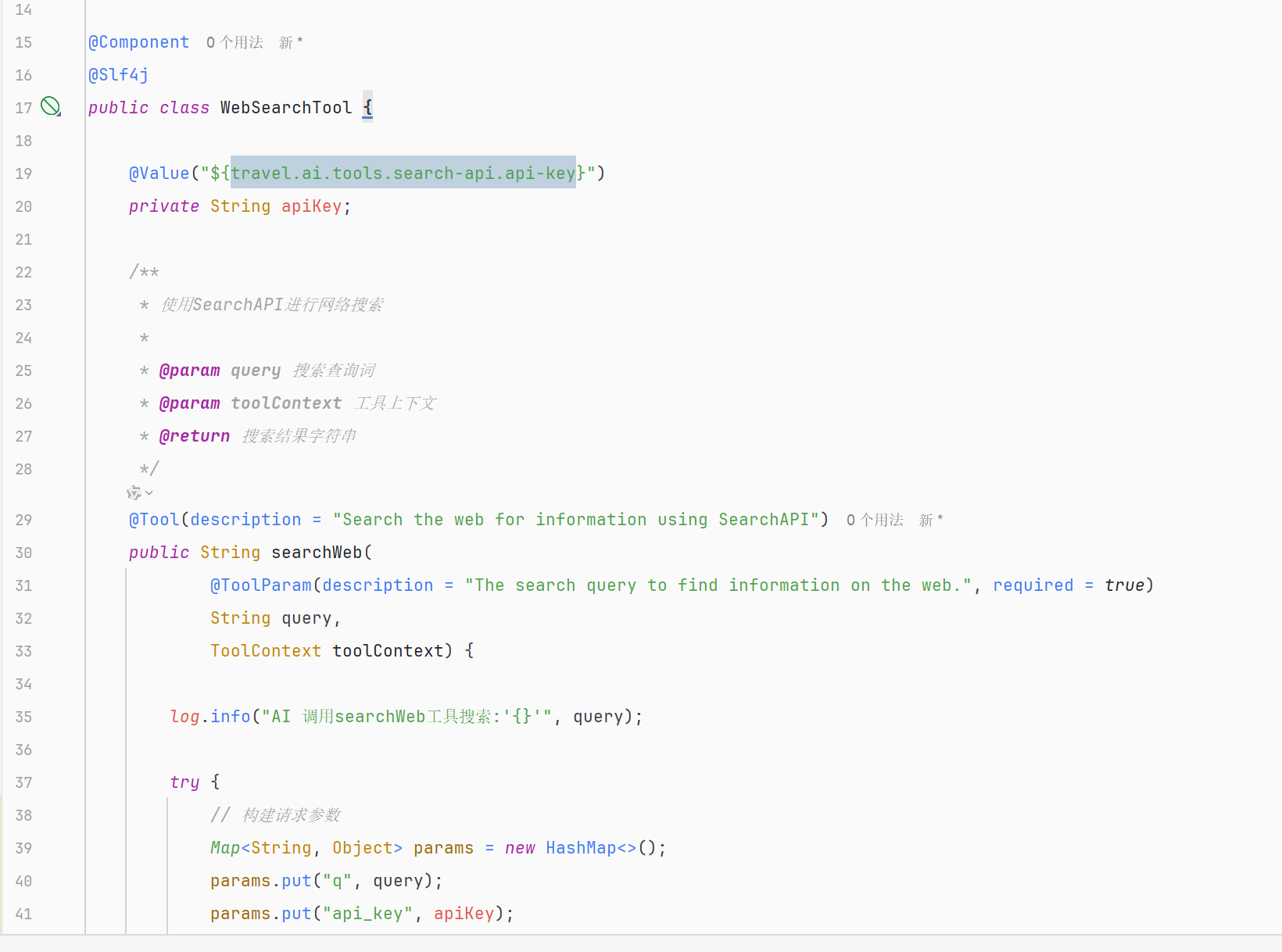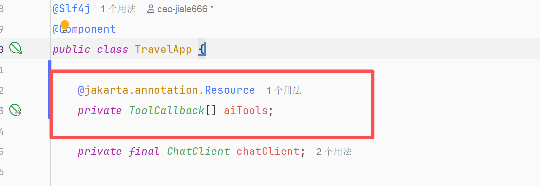 这是 SpringAI 推荐的极简模式,核心是基于注解自动注册工具,AI 模型会根据用户输入自动判断是否需要调用工具,无需你手动处理工具调用的流程逻辑。