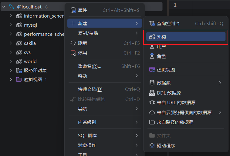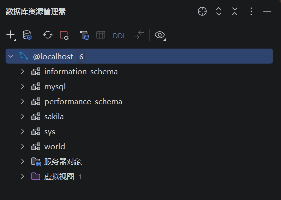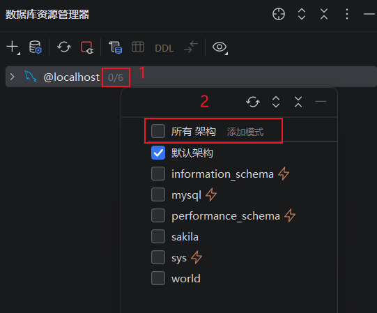 连接上了MySQL服务之后,并未展示出所有的数据库,此时,我们需要设置,展示所有的数据库,具体操作如下:
