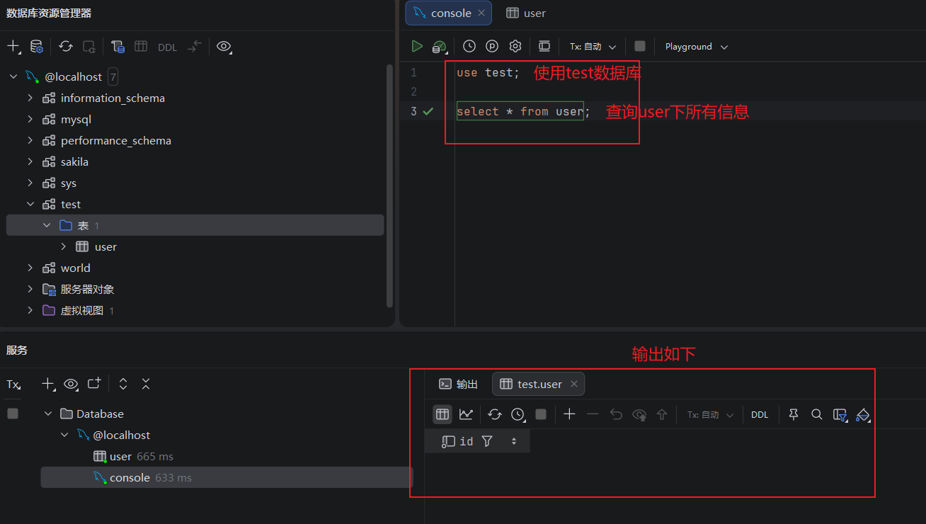 init.sql,在 DataGrip 中直接运行,快速初始化测试环境.