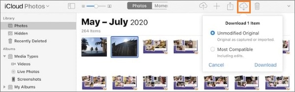 步骤二:点击"照片"选项,浏览并选择要恢复的照片。点击"下载"按钮将照片保存到当前设备。