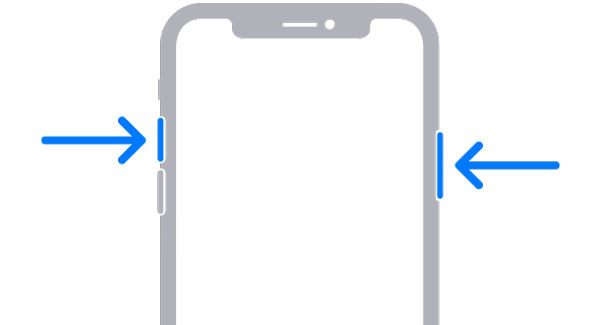 步骤 2: 在 iPhone 上,同时快速按下并松开"侧边 "按钮和"音量增大"按钮。
