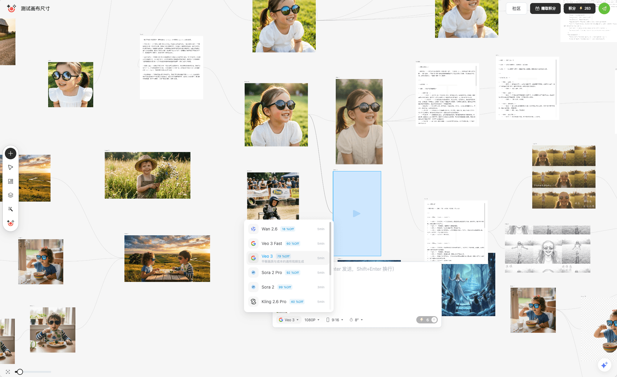 All In One模式最让人惊喜的就是"无缝衔接",所有功能都整合在无限画布上。写文案、做配图、剪短视频、配背景音,从头到尾都在同一个界面操作,不用反复导出导入素材,也不用来回调整格式。对比传统多工具组合使用,效率起码提升3倍,尤其适合赶项目时抢进度。
