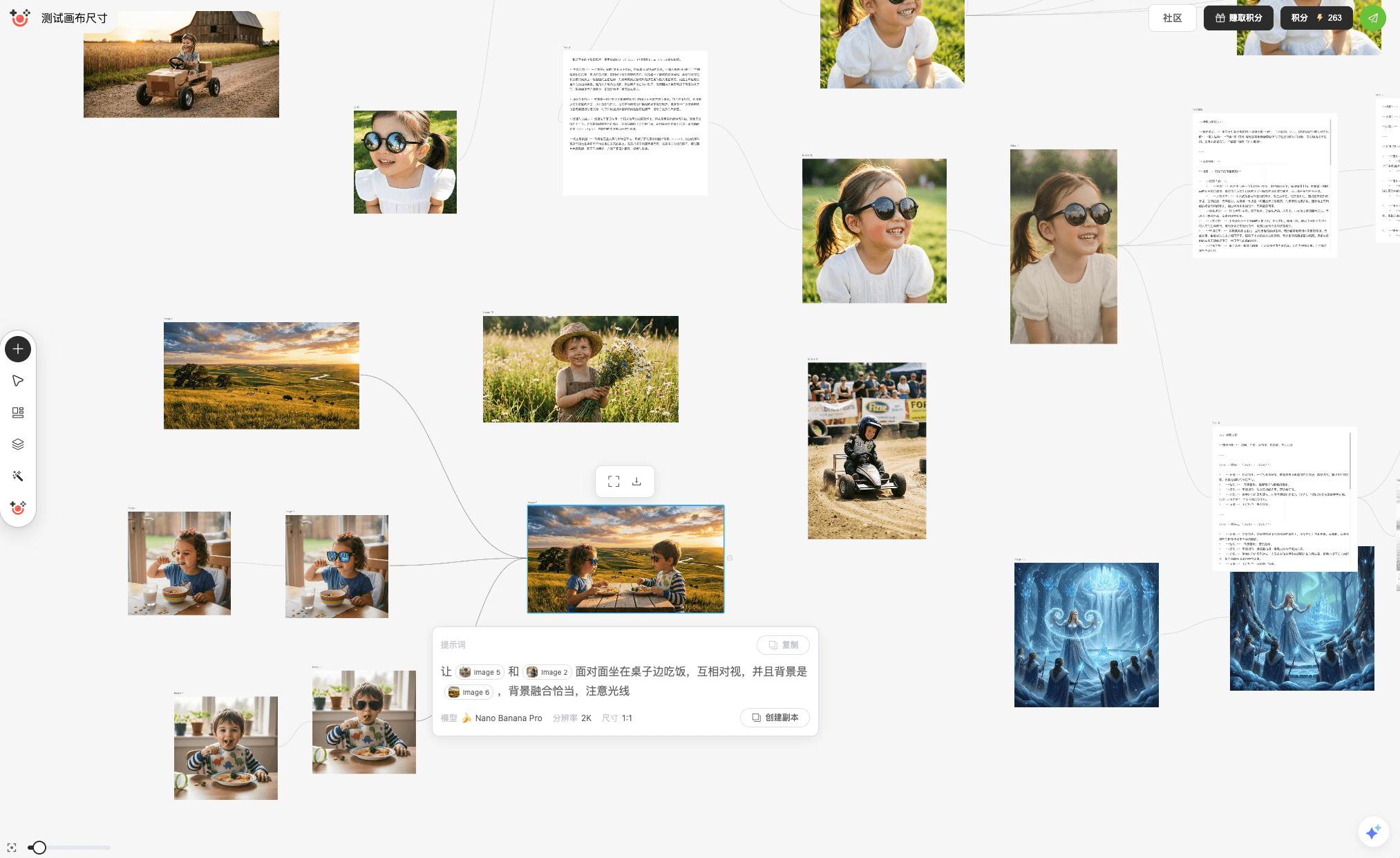 这款工具的无限画布,远不止是"够大"这么简单,还悄悄集成了素材管理、风格统一、团队协作这些实用功能。用户先把品牌色卡、常用字体、版式规范这些基础设定好,AI生成的素材就会自动整齐陈列在画布上,一眼就能对比筛选,想微调某个局部也能精准重绘,不用重新生成全部内容。亲测下来,比用传统工具节省一半以上时间,再也不用做重复劳动。