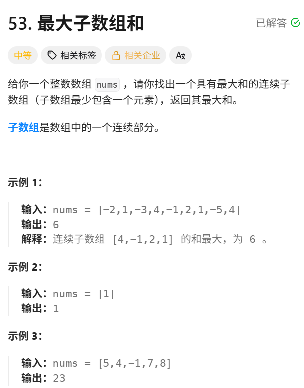 一、最大子数组和