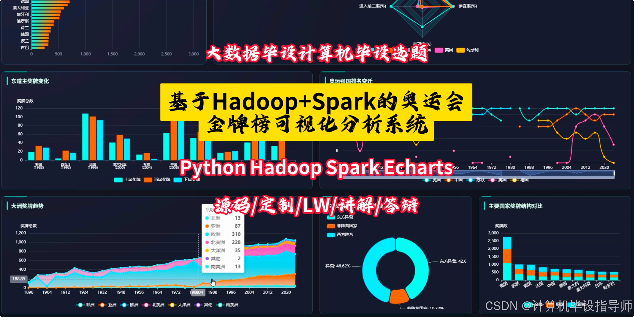 正在为毕设发愁的同学们,这个基于Hadoop+Spark的奥运会数据分析项目或许能给你带来灵感!从技术选型到功能实现,我都整理了详细的资料和代码。如果还有不清楚的地方,欢迎随时来我主页找我聊聊。觉得内容有用的话,别忘了给个一键三连支持一下,也欢迎在评论区留下你的想法,我们一起交流,共同进步!