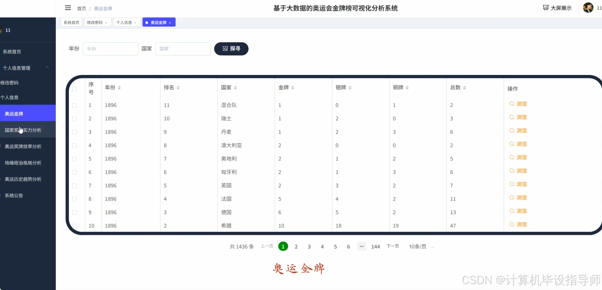 奥运会金牌榜可视化分析系统-图片展示