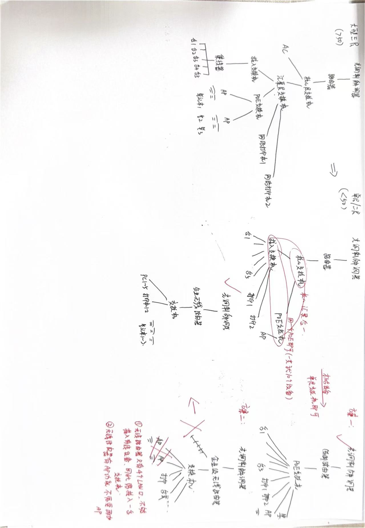 只有一个有线网络接入点+多个设备:设备需要具有NAT地址转换功能,这样多个设备才能共用一个公网IP,因此必须有路由器。因此路由器-交换机-AP需要