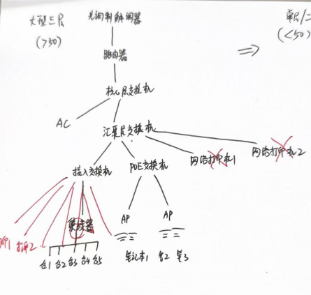 有线设备+无线设备:方案一 无线路由器------PC+无线信号;方案二:有线路由器------交换机------PC+AP。标准在于:无线路由器只有4个LAN口,若有线设备>4,则需要加一台交换机;家庭一般用无线路由器就够了,企业办公室用企业级无线路由器,这样有AC功能,可以控制和管理多个AP。方案二:适用于大型的(主机数>50)