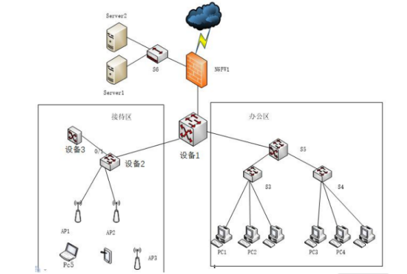 汇聚层交换机:连接着服务器,拓扑图中可以路由器下面直接连着汇聚层交换机,没有核心交换机。