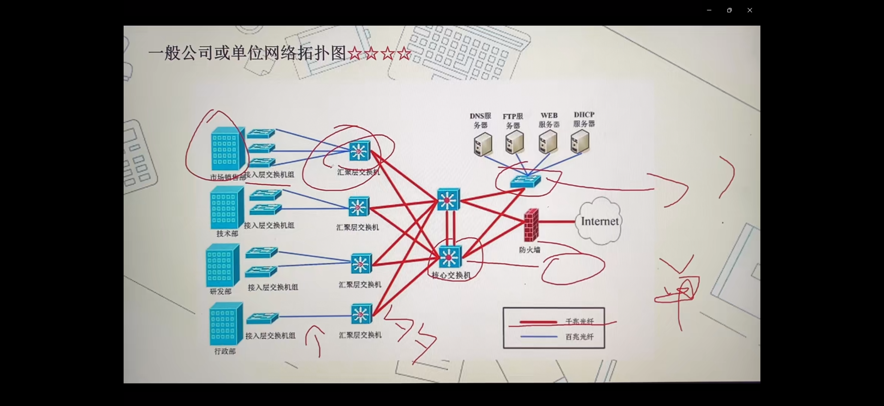 核心交换机:具有一定的路由功能,在图中有时候用核心交换机代替了路由器(不太标准,但不错)