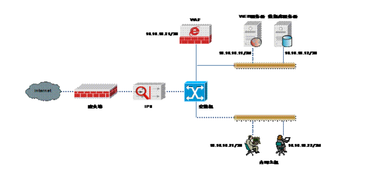 WAF:应用防火墙,一般串联在web服务器旁,主要作用是保护web服务器,是第一道应用防线,对进入web服务器的所有流量进行监控和过滤。