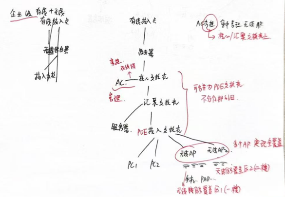 无线AP:接在接入交换机上,将有线信号转为无线信号的设备,供无线设备连接使用