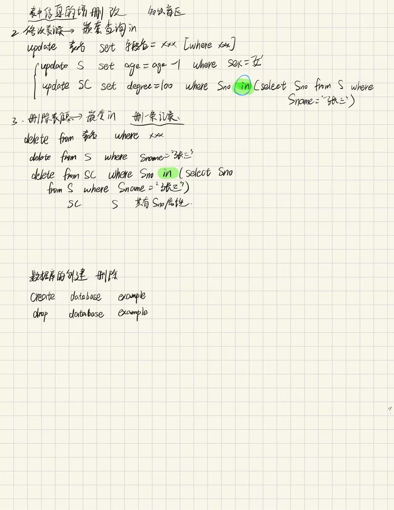 这里在多表查询时,最好用in嵌套查询,而不用where连接查询。因为更新和删除的都是一张表啦。
