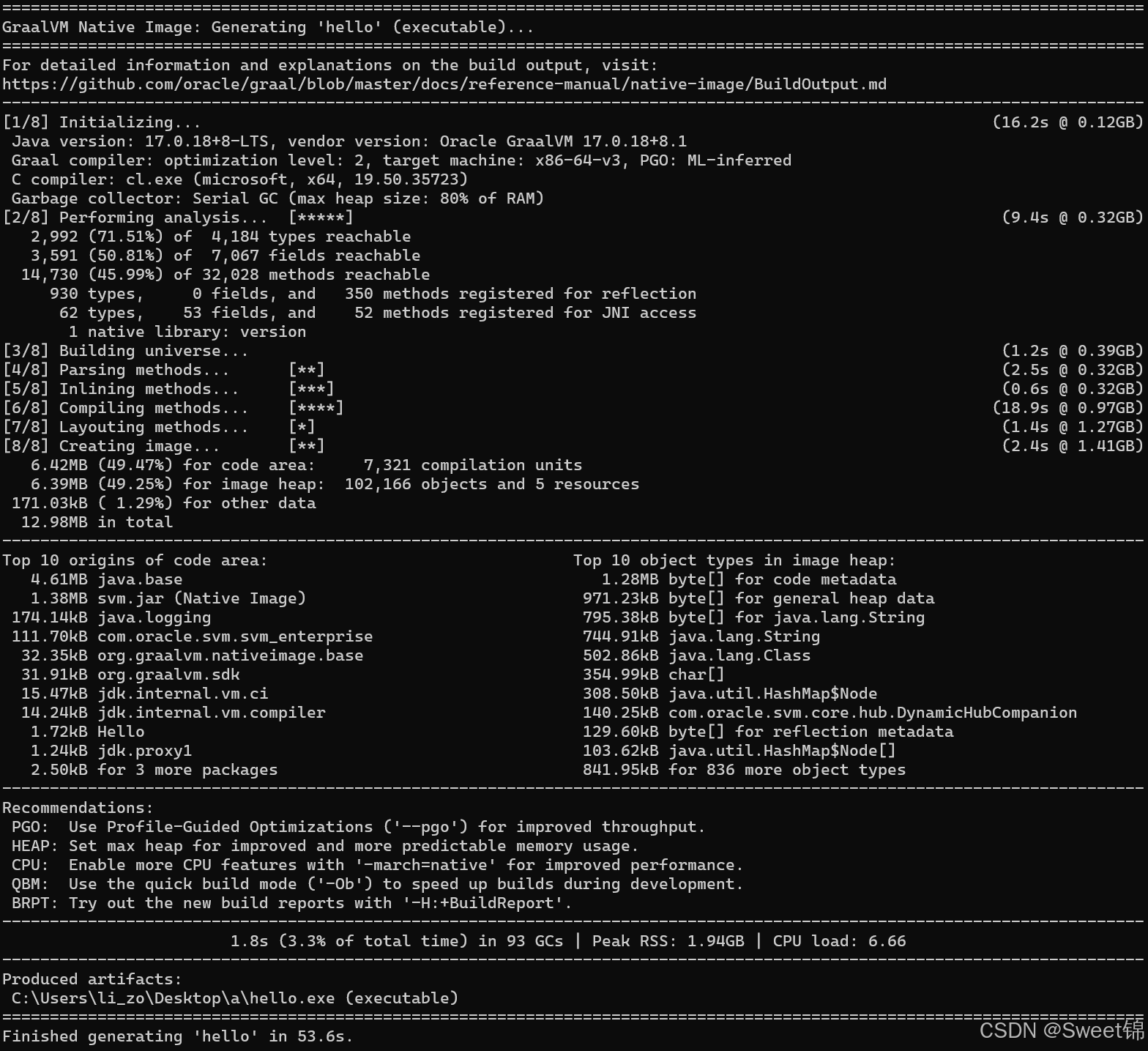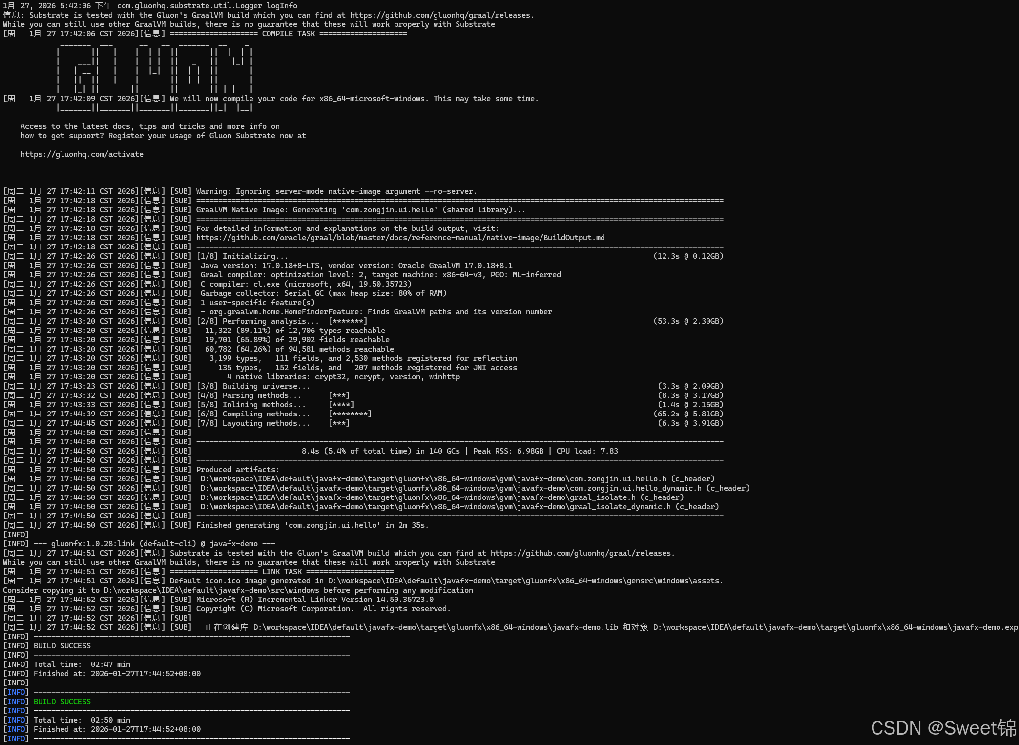 我一直在寻找一种能将Java直接编译为二进制文件(或者说,原生的EXE程序)的方法。过去遇到的多是"套壳"方案------它们为Java程序包上一个EXE外壳,看似与普通可执行文件无异,运行时却依然依赖JVM。直到最近接触了GraalVM ,我才感到真正的突破。它从根本上解决了这一问题,能将Java代码直接编译为独立的本地可执行文件。这种真正意义上的原生编译方式,令人激动,带来的喜悦远超言语所能形容------这不仅是工具的进化,更是Java开发范式的一次重大跃迁。