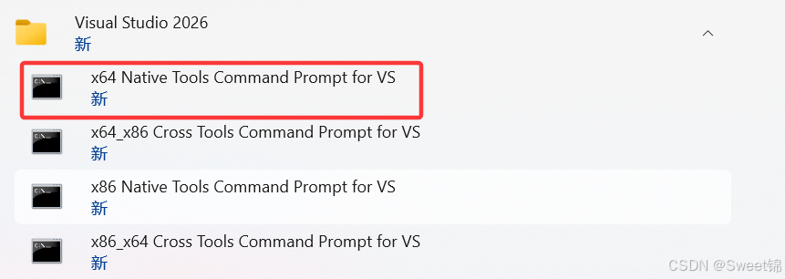 b)打开 C++ 编译环境:x64 Native Tools Command Prompt for VS