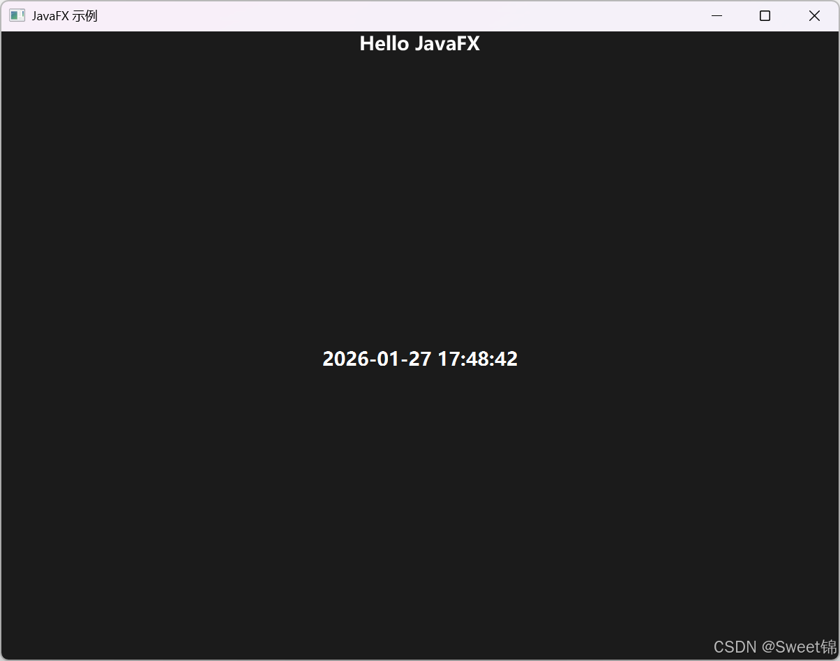 功能描述:在JavaFX窗口中,实时显示系统时间。