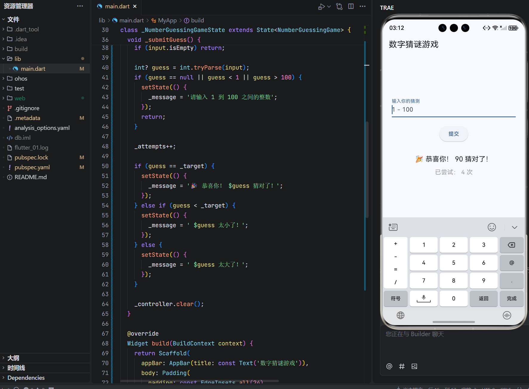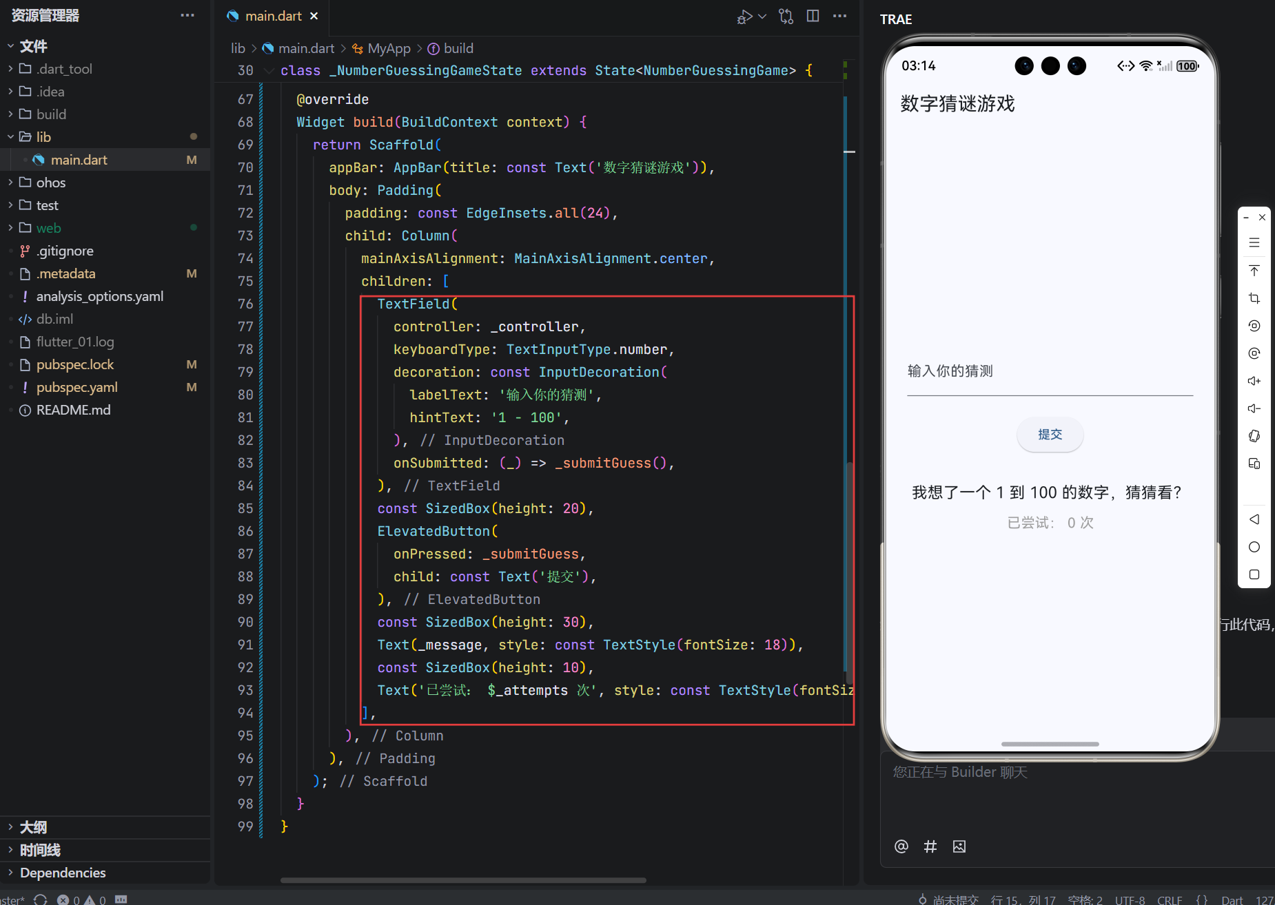 StatefulWidget、TextField、Random的典型用法; - 无复杂依赖,易于调试。