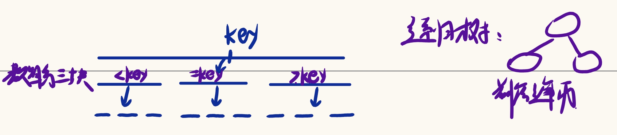 将数组分为小于key,等于key,大于key。 等于key的区间就是已经确定了,再去小于key和大于key的区间排序。