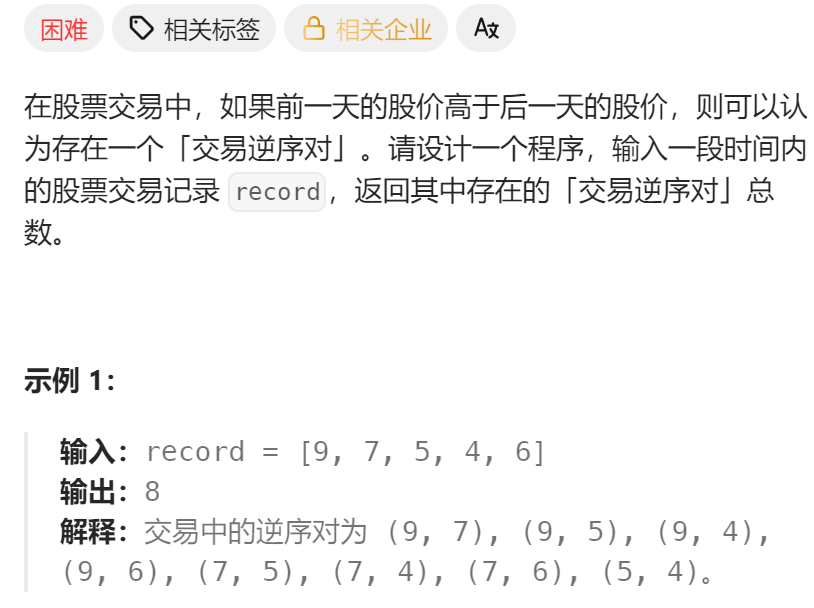 [6、LCR 170.交易逆序对的总数](#6、LCR 170.交易逆序对的总数)