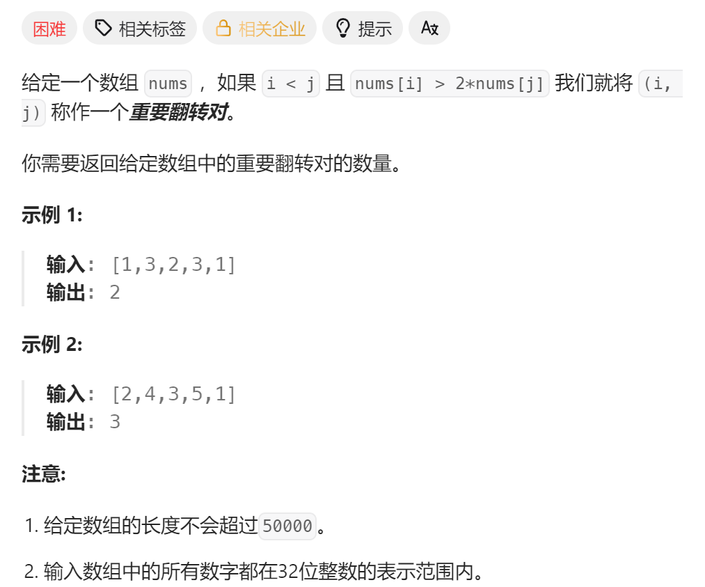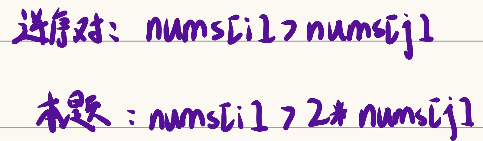 本题是和某一个数的2倍进行比较。和归并排序算法是不一样的,我们此时就不能用归并排序思想来解决了。