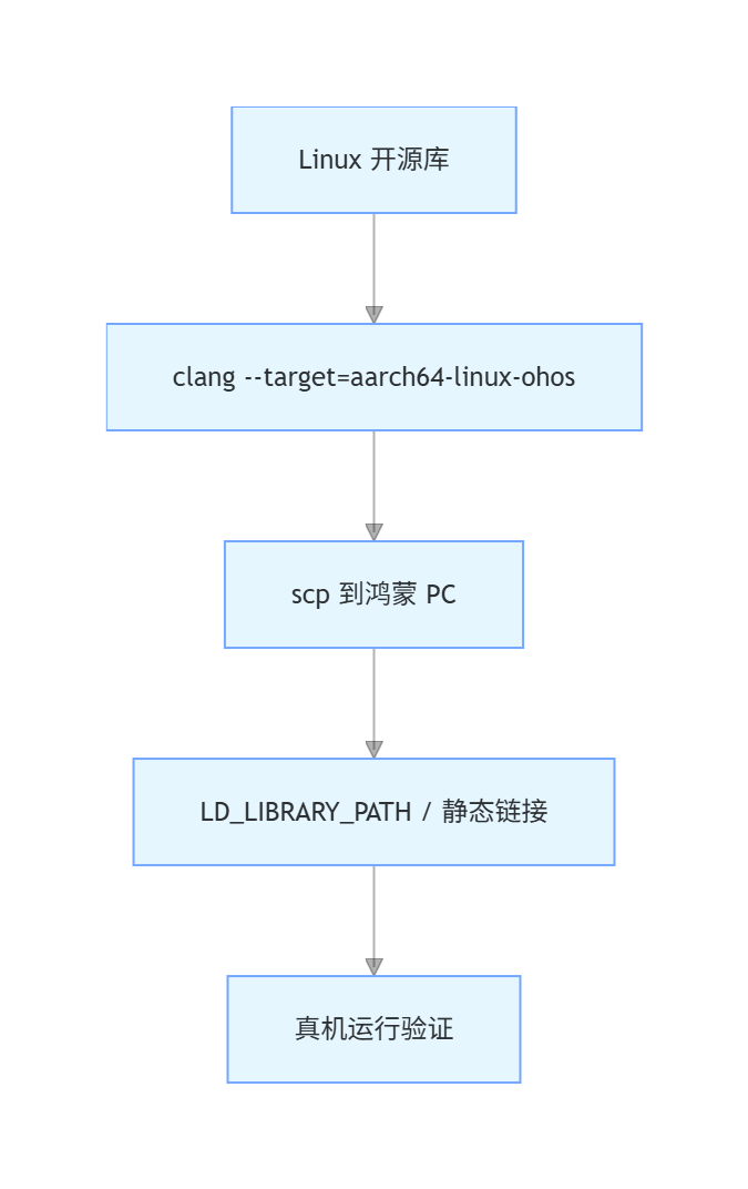 确保你的 clang 能编译出 aarch64-linux-ohos 的 ELF。