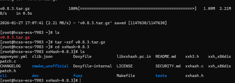 wget https://github.com/Cyan4973/xxHash/archive/refs/tags/v0.8.3.tar.gz