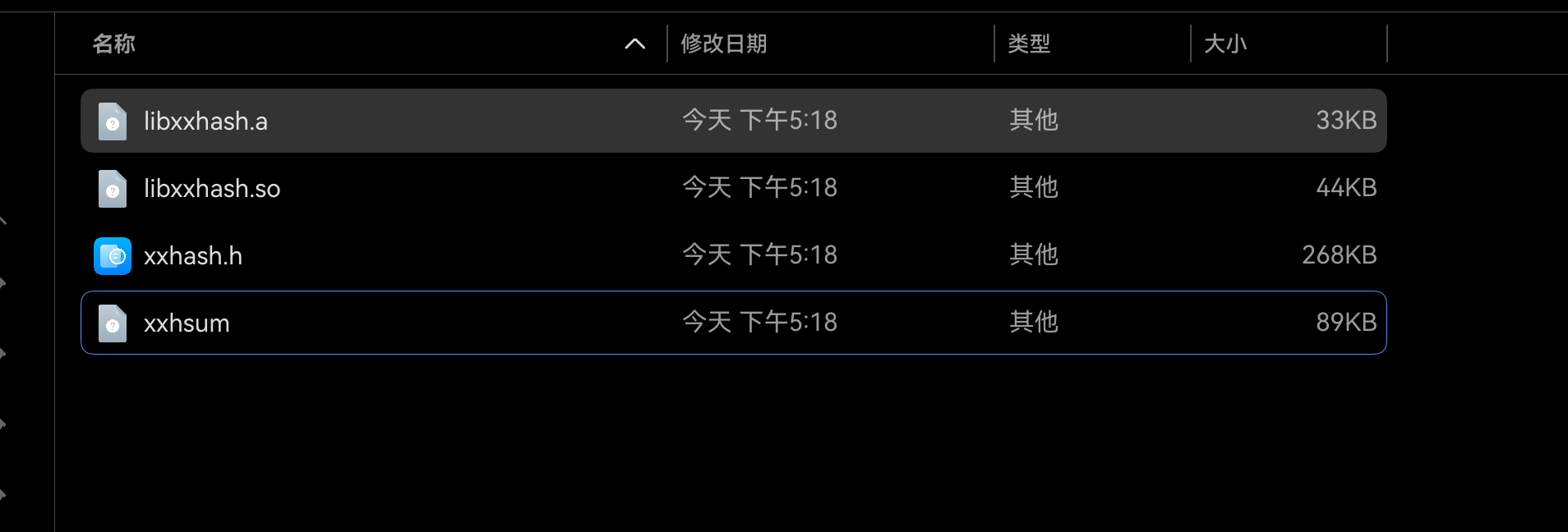 xxhash.c:核心算法实现xxhash.h:对外接口xxhsum:官方命令行工具