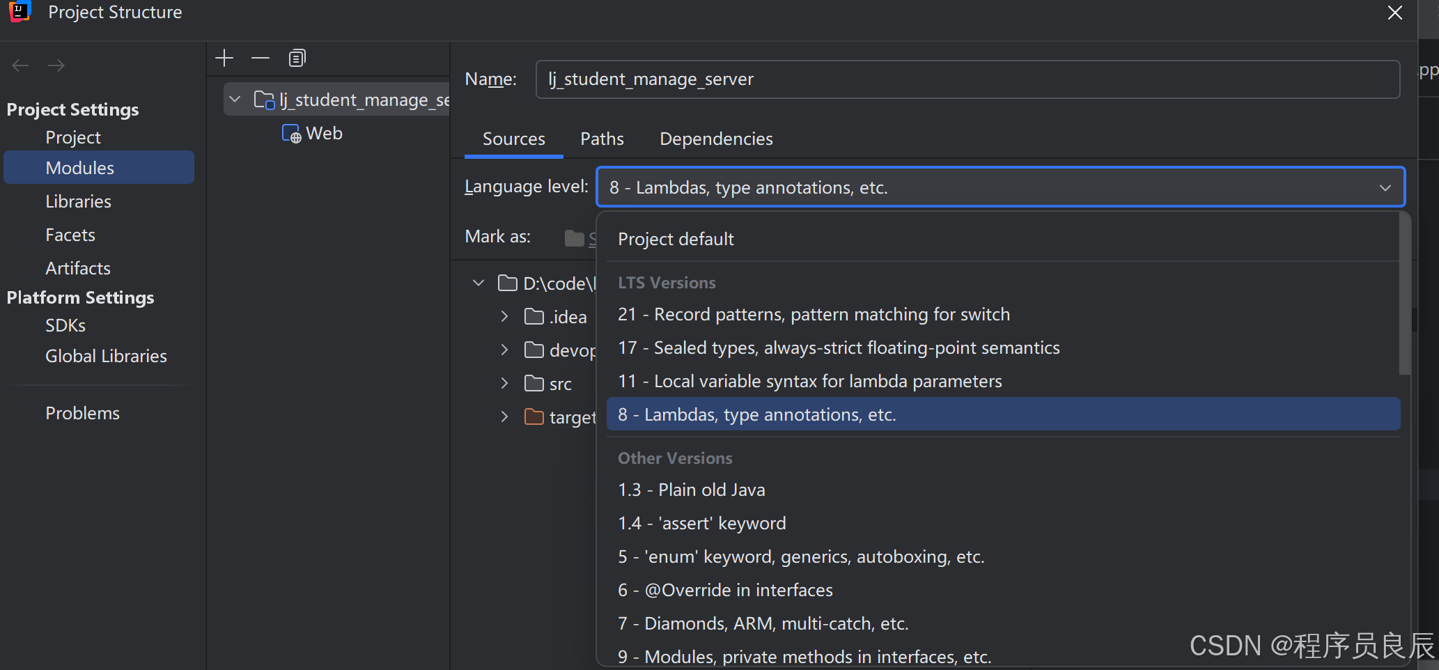 项目配置 (当前项目用哪个 JDK):