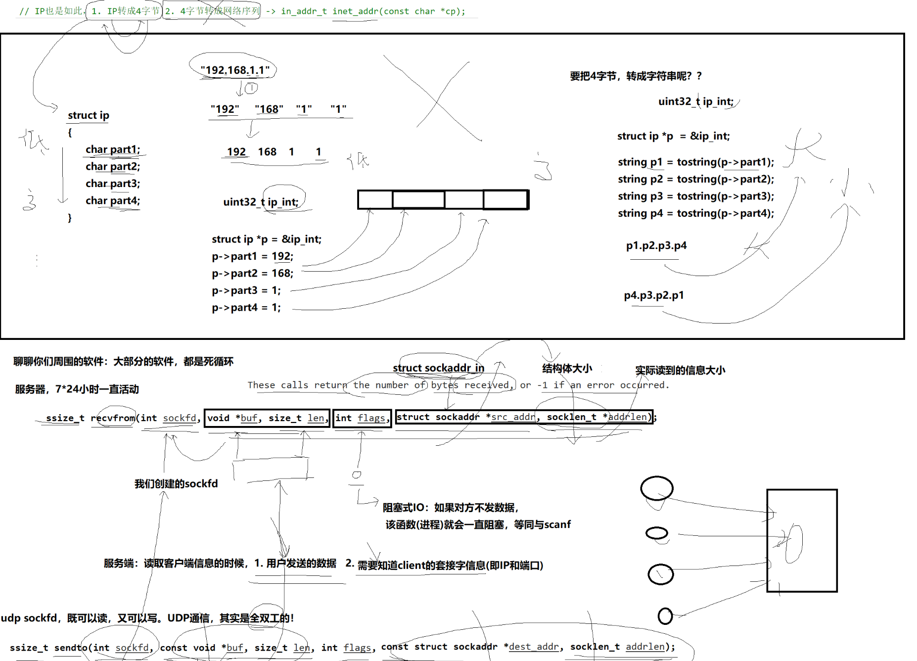 服务器端:需要绑定端口号和IP地址,这是唯一的,不然客户端找不到服务器端